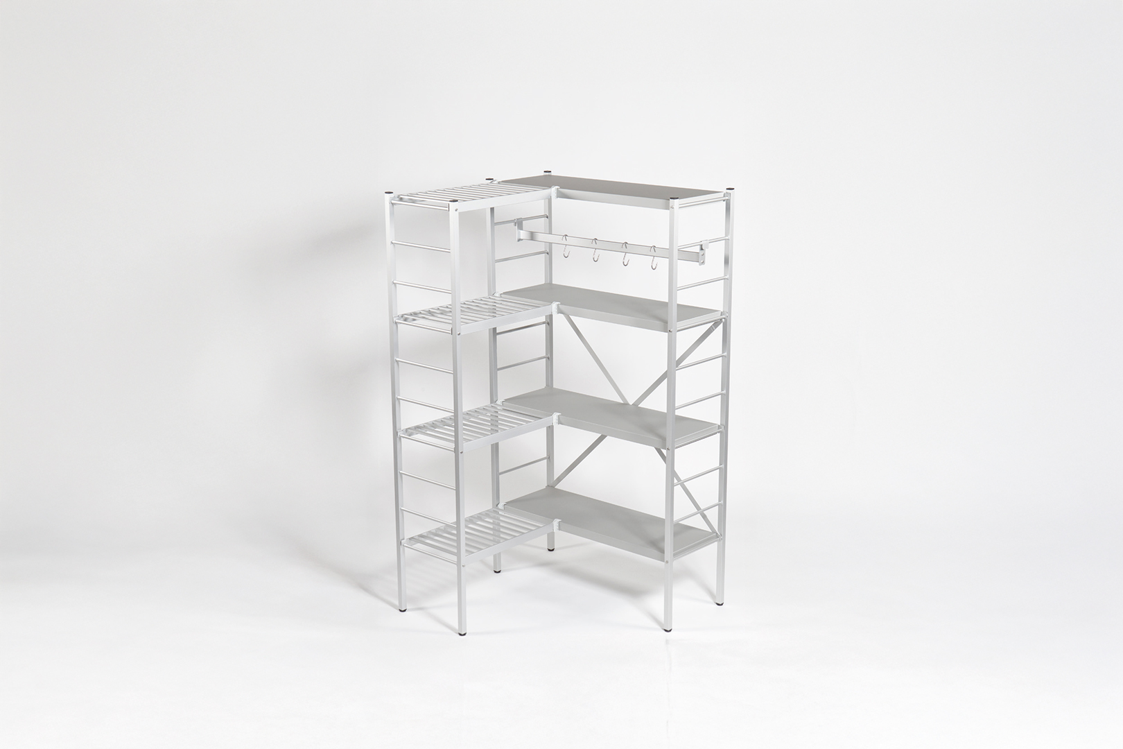 Freistehendes, gestecktes Regal aus Aluminium.