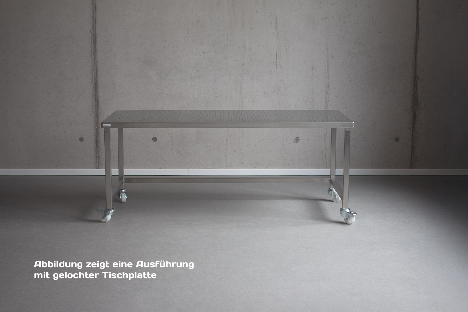 Stabiler und für alle Reinraumklassen geeigneter Standard-Reinraumtisch aus Edelstahl mit ungelochter Tischplatte.