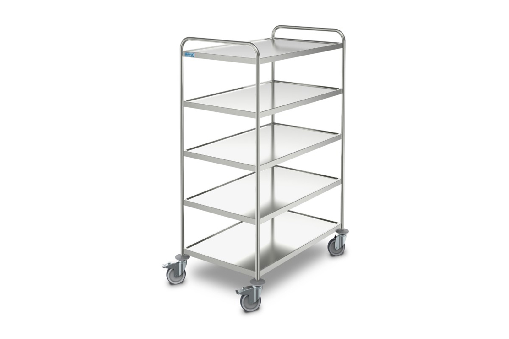 Etagenwagen in stabiler, selbsttragender und hygienischer Konstruktion aus Edelstahl.