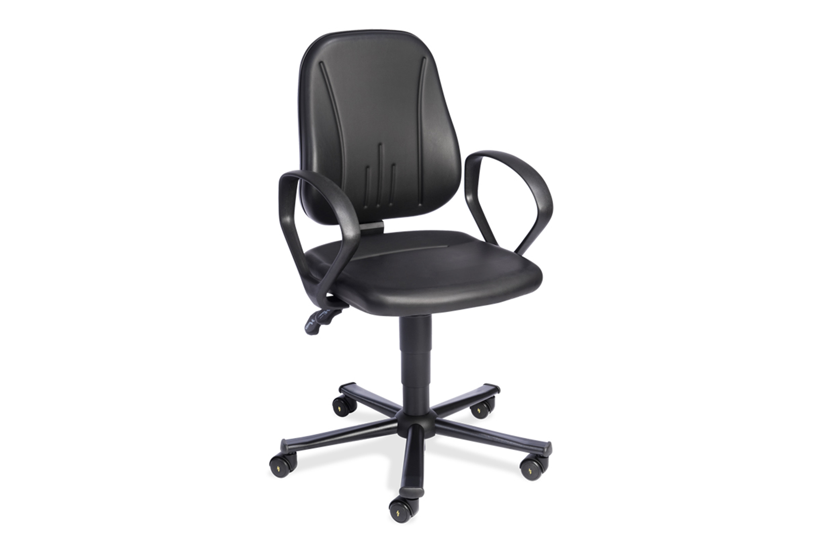 - Stabiles, schwarzes Fußkreuz aus Kunststoff Ausgestattet mit leitfähigen Rollen, speziell geeignet für harte Bodenbeläge