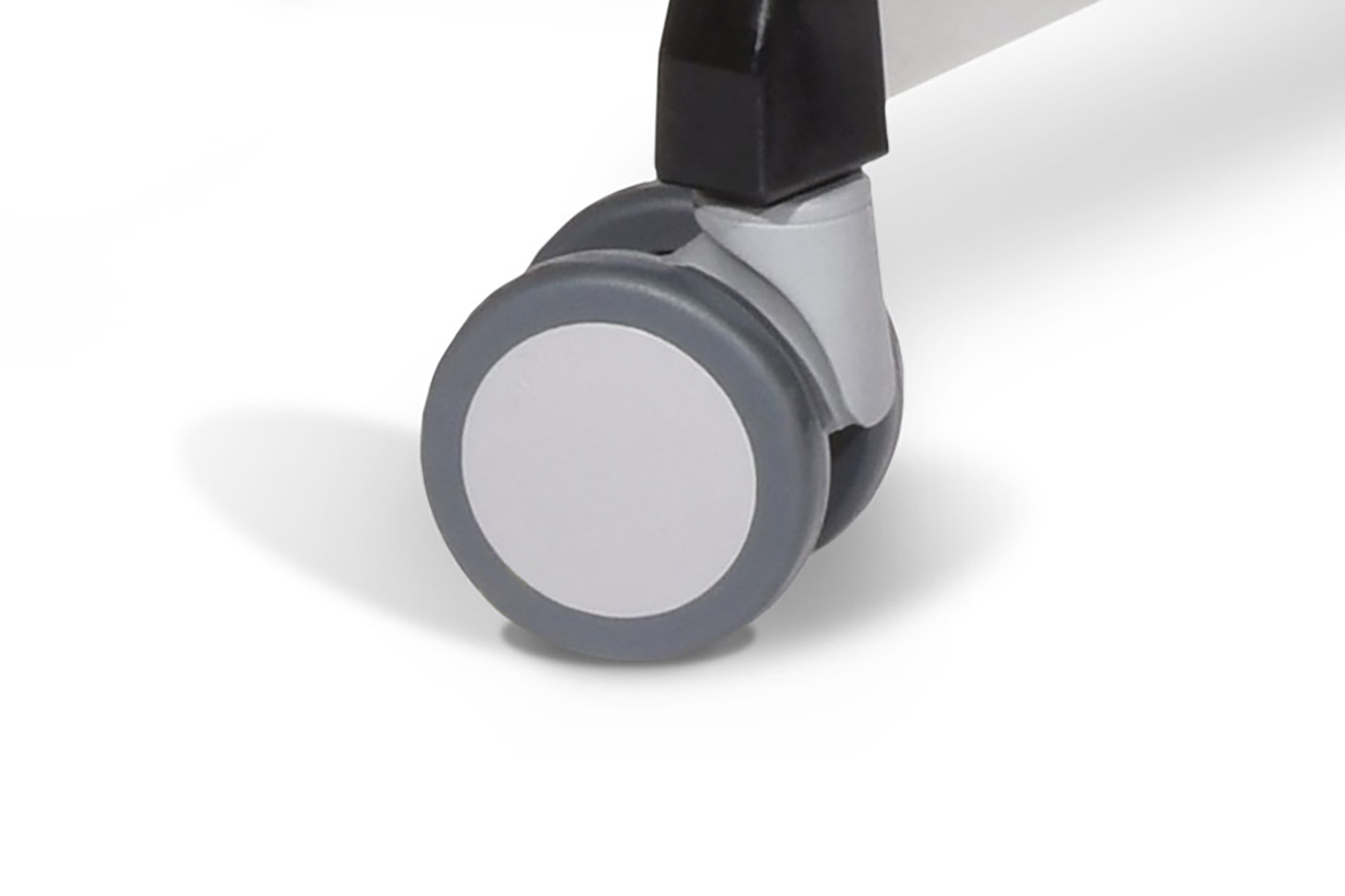 - Lastenabhängig gebremste Doppellenkrollen Ø 65 mm für harte Böden